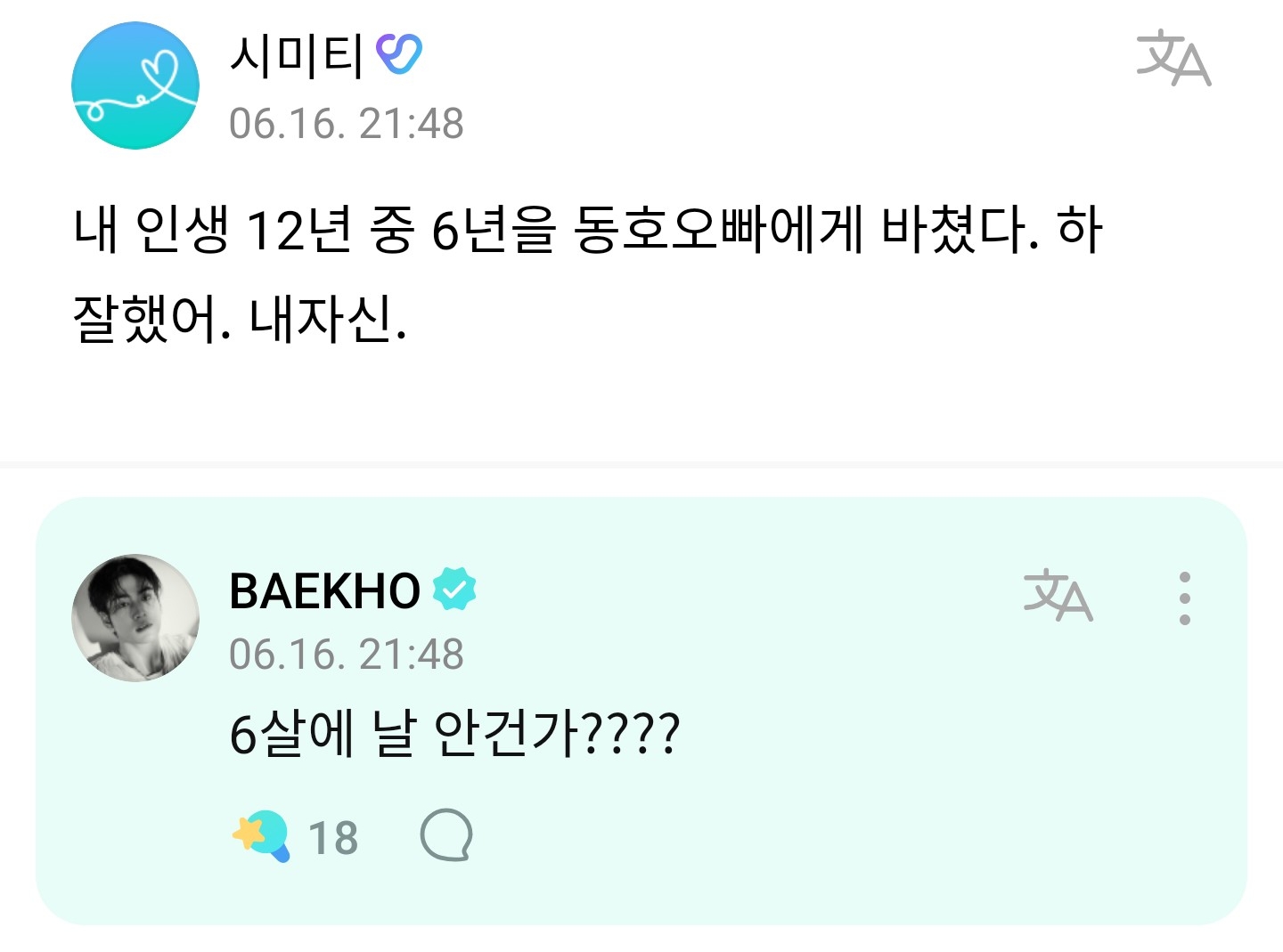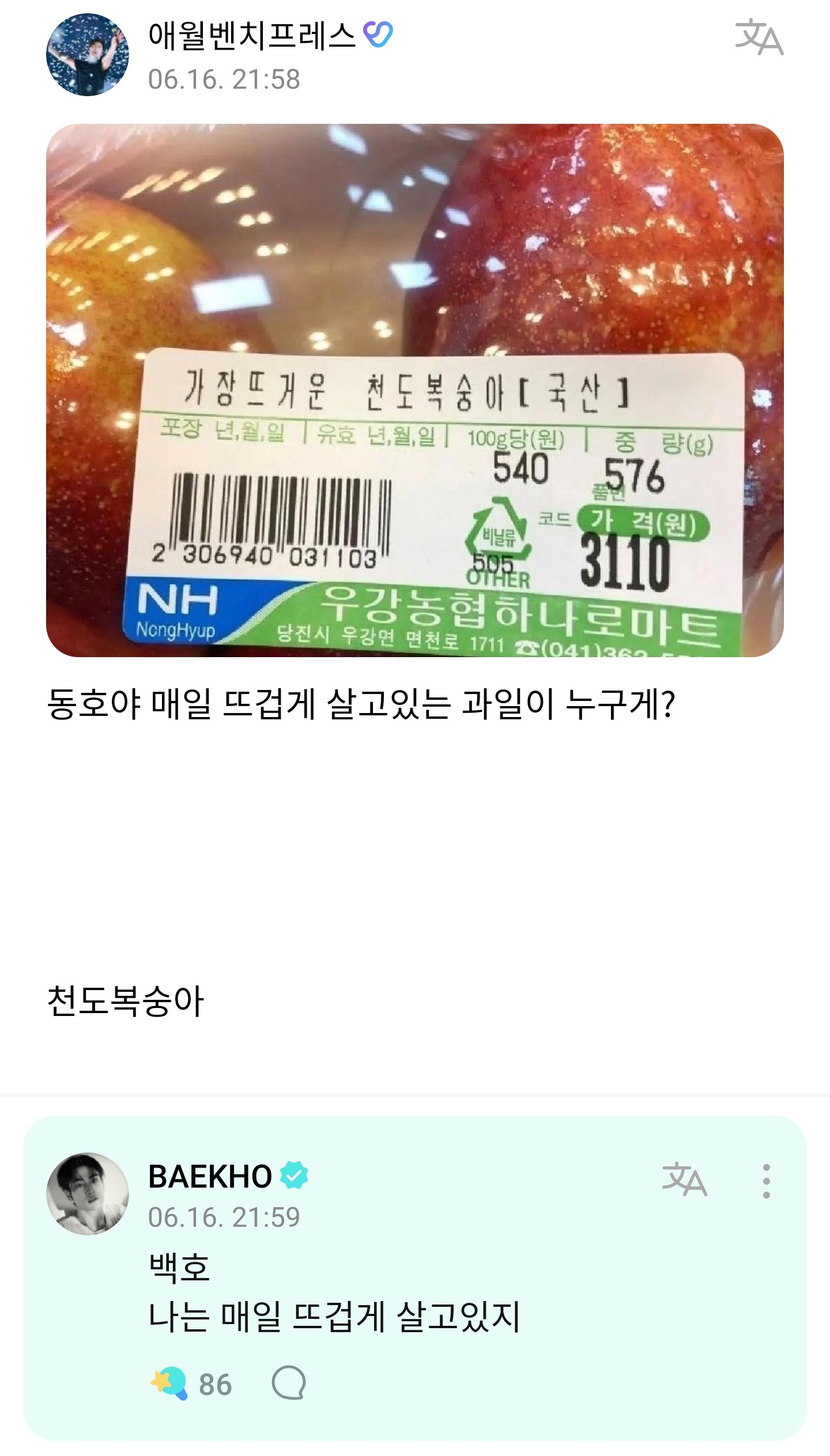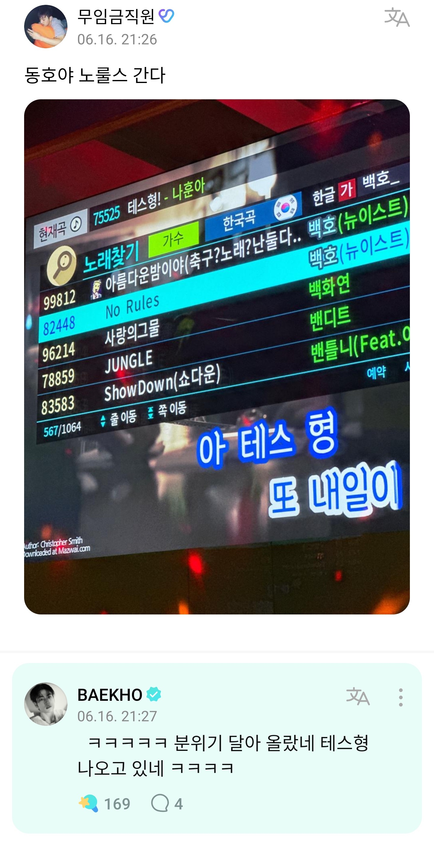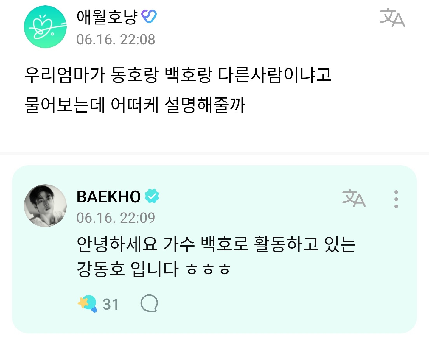 안녕하세요 가수 백호로 활동하고 있는 강동호 입니다 ㅎㅎㅎ
