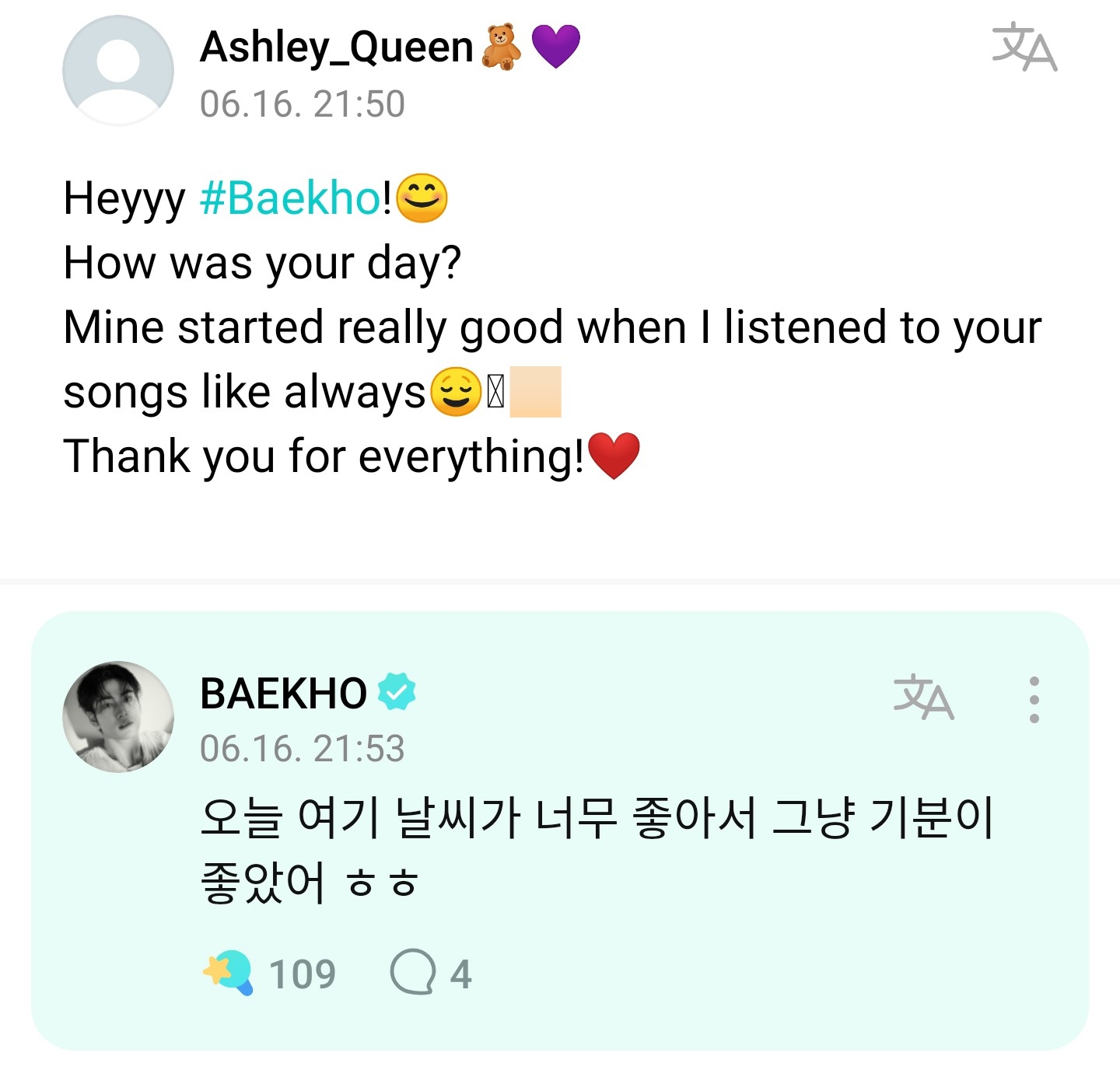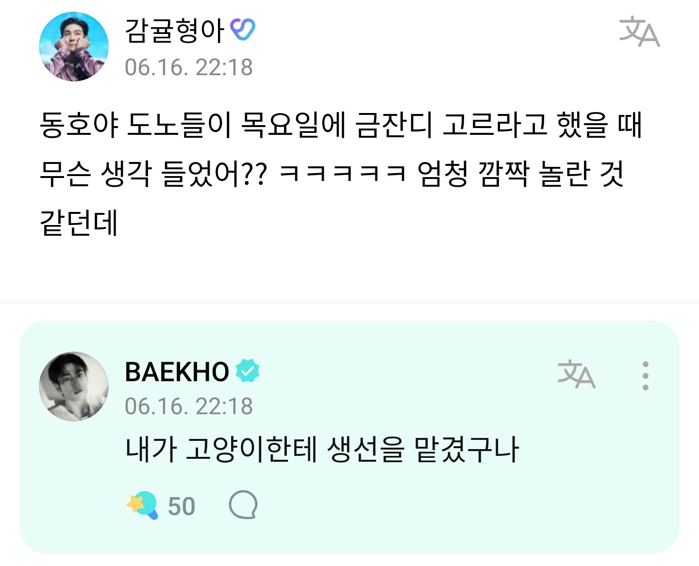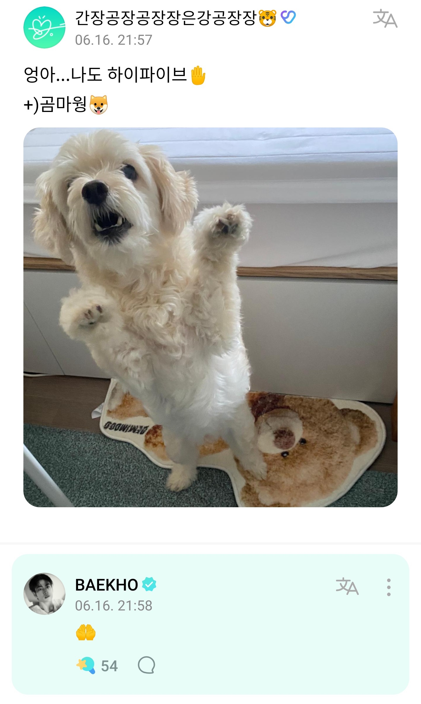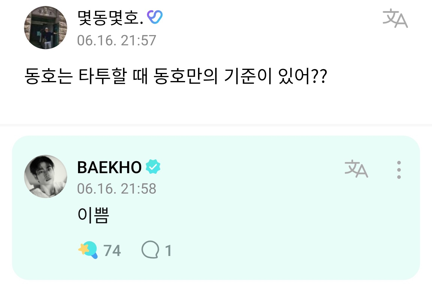 안녕하세요 가수 백호로 활동하고 있는 강동호 입니다 ㅎㅎㅎ