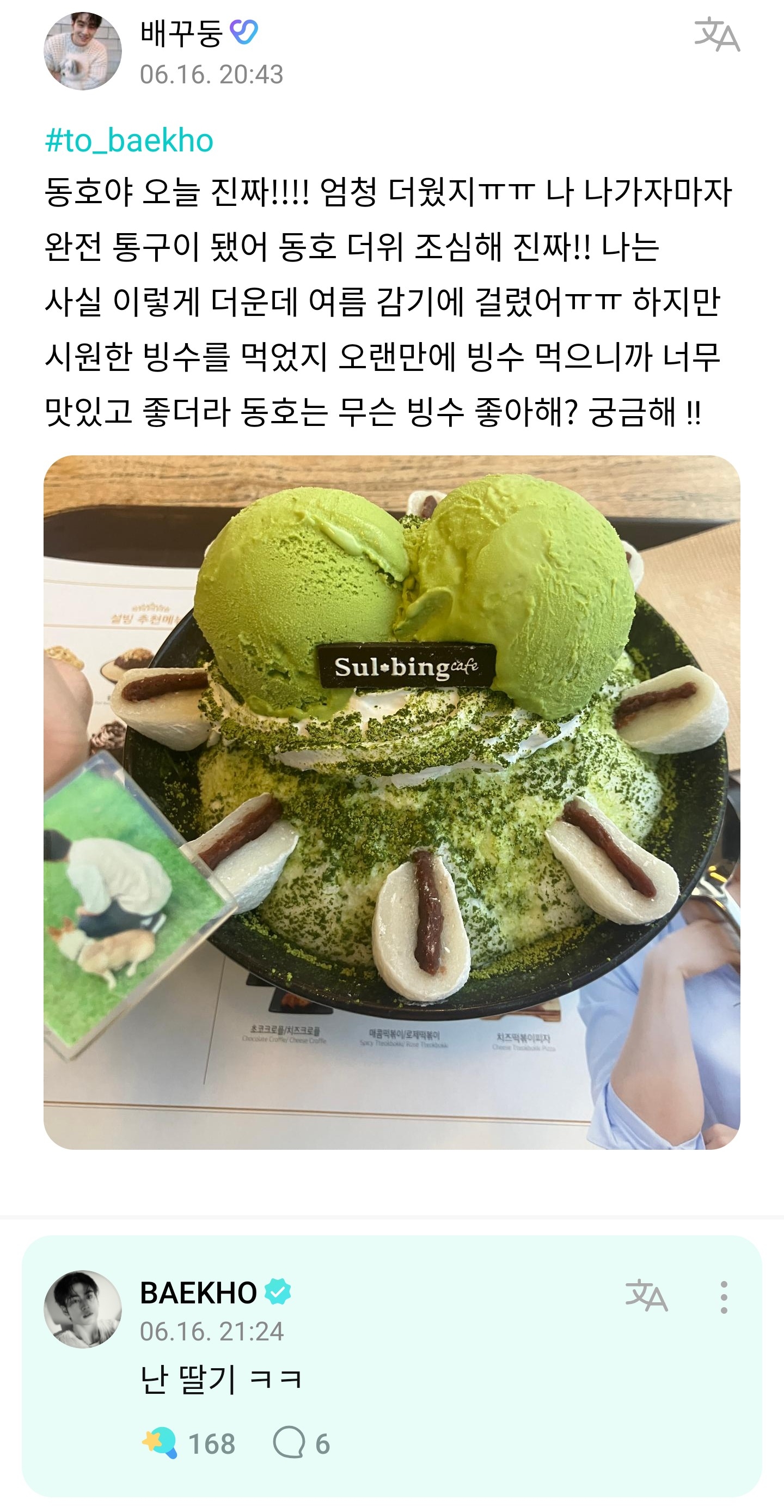 저 팥빙수에 우유를 조금씩 넣으면서 먹어야 돼 살살 녹이면서 ㅋㅋㅋ