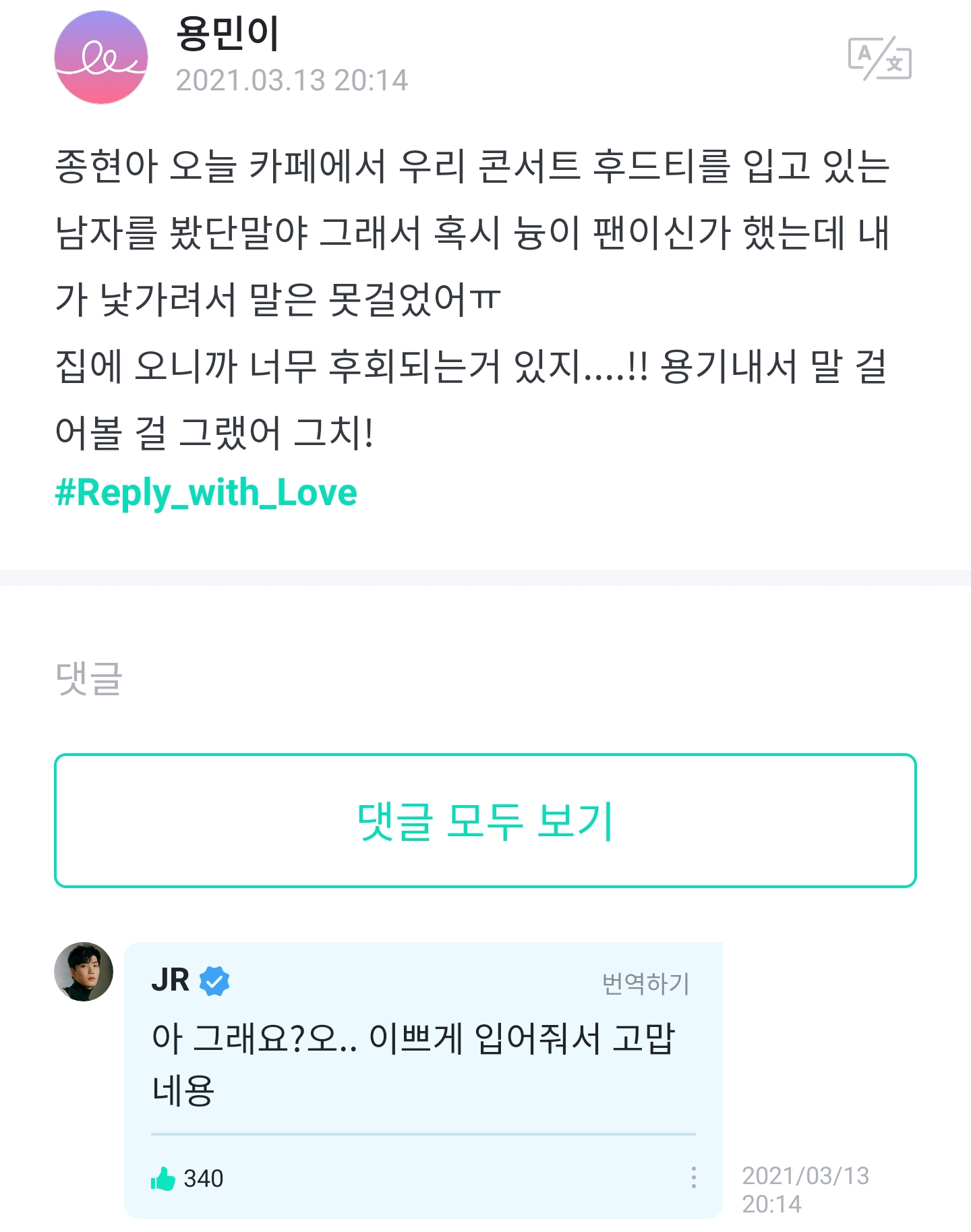 아 그래요?오.. 이쁘게 입어줘서 고맙네용