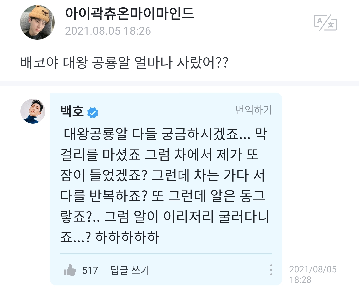 아직 대답 안했는데......ㅎㅎ