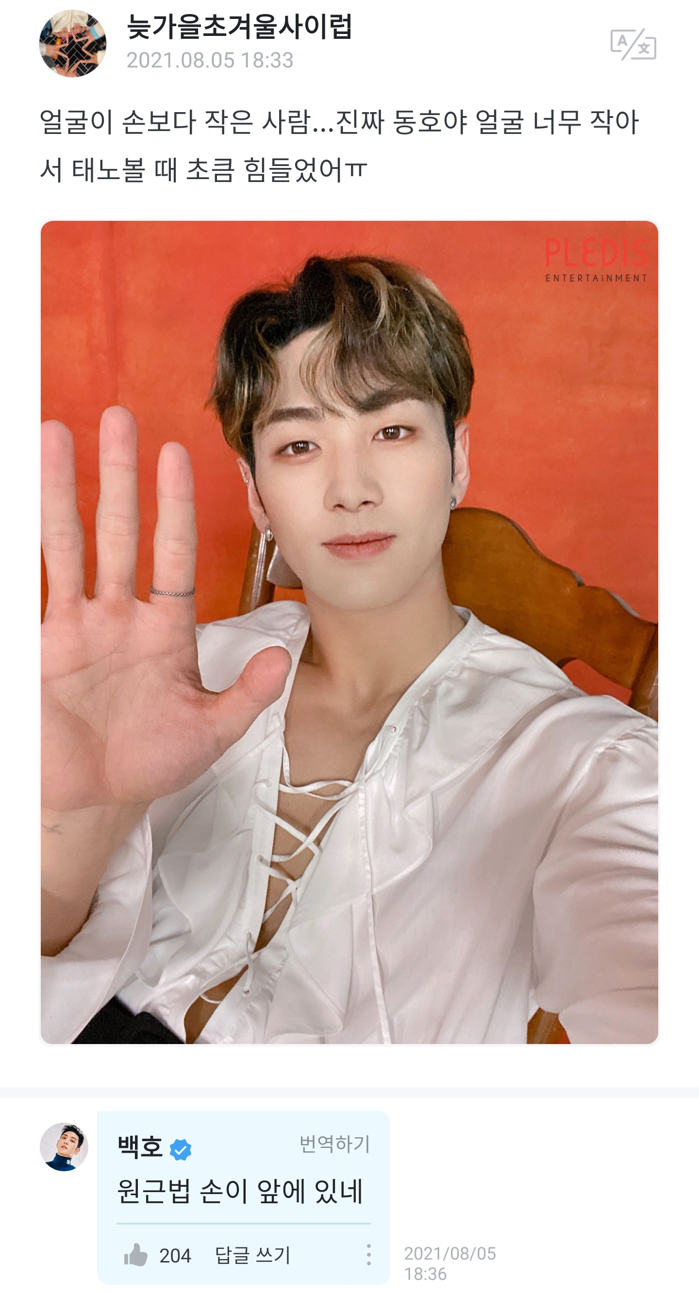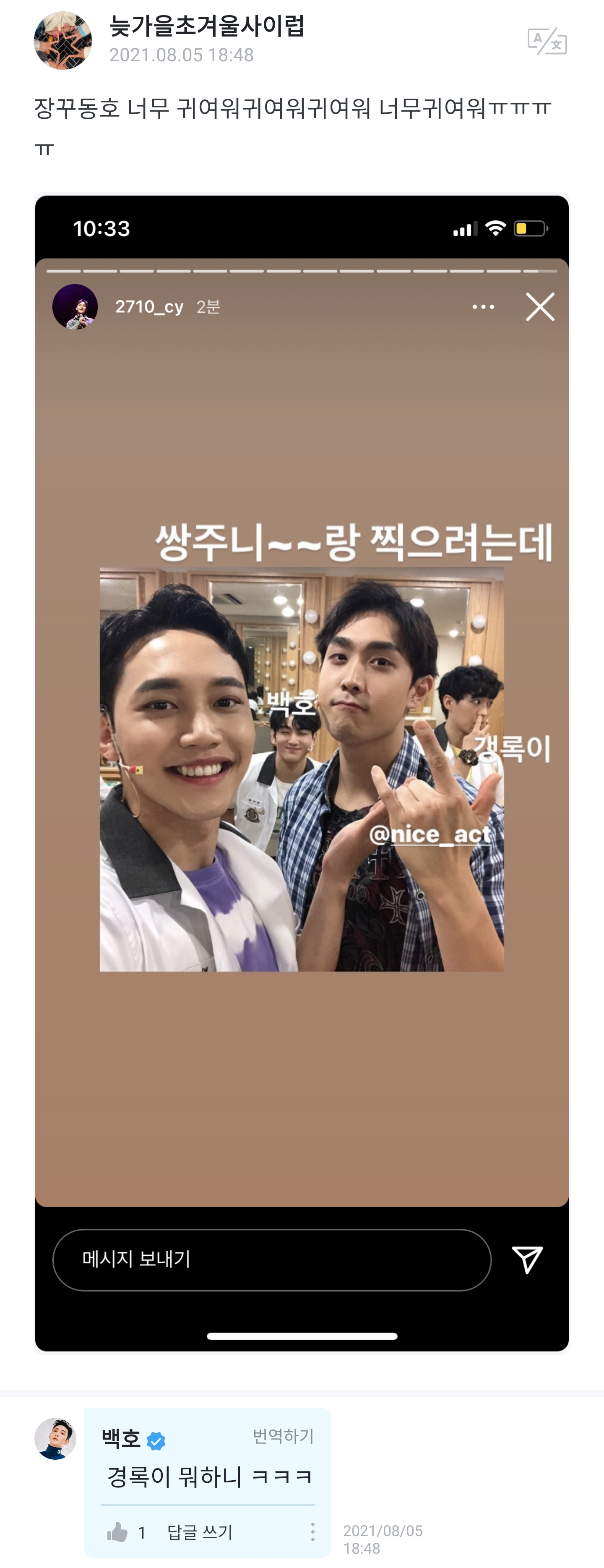 얘는 백호고 뉴이스트고 사진은 합성이네
