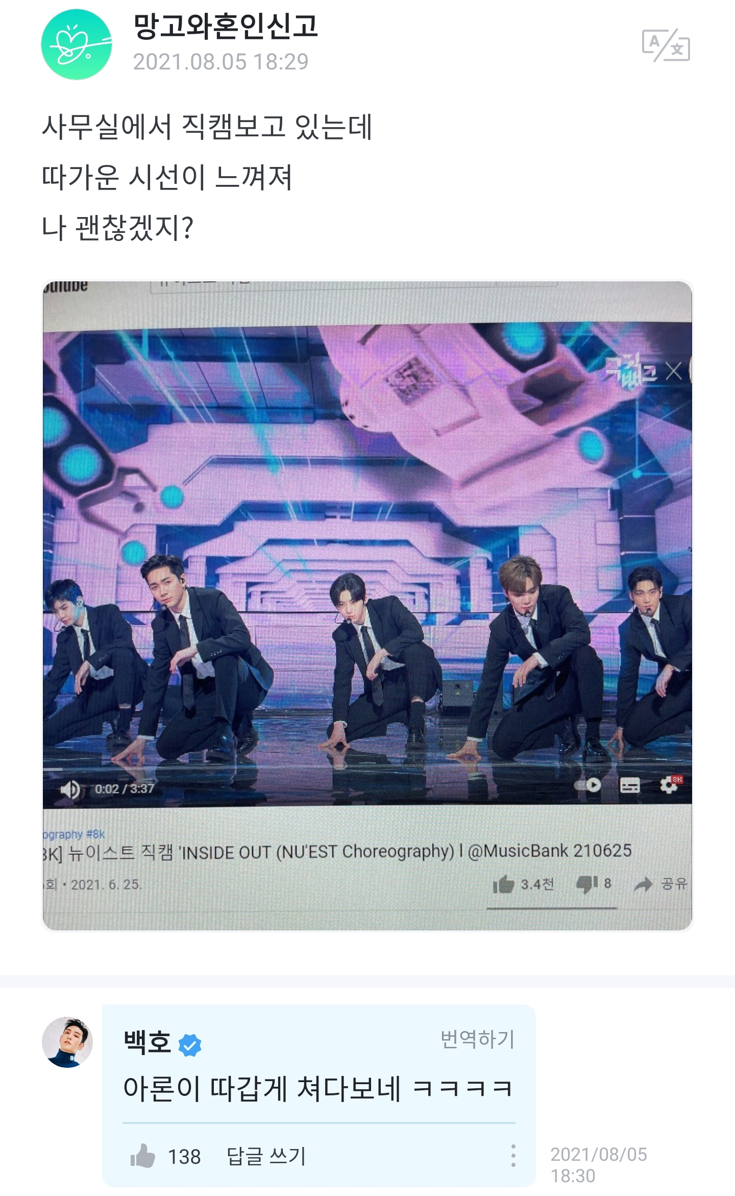 직캠 봤다면서 왜 이 사진써??